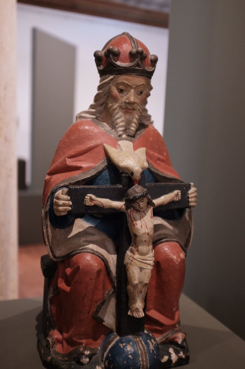 One of many Trinity figurines. The Holy Spirit is depicted as a dove. Note the globe of the earth at the base.