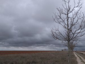 The elevation gain from Astorga to Foncebadon is 560 meters (1,840 feet). With altitude, conditions change. The vegetation changes to scrub oak, Heather and eventually, only brush. The winds are also stronger.